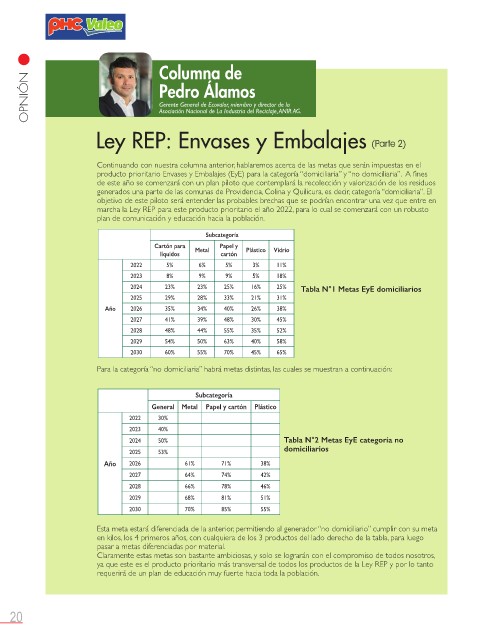 producto prioritario Envases y Embalajes (EyE) para la categoría “domiciliaria” y “no domiciliaria”. A fines