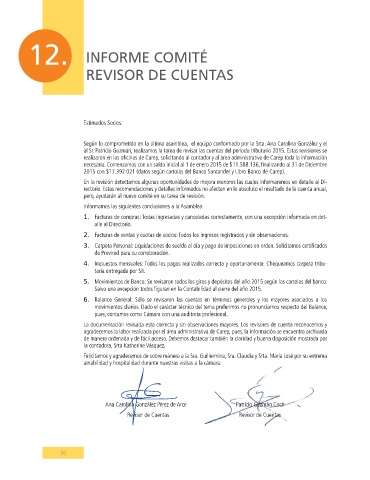 La documentación revisada esta correcta y sin observaciones mayores. Los revisores de cuenta reconocemos y